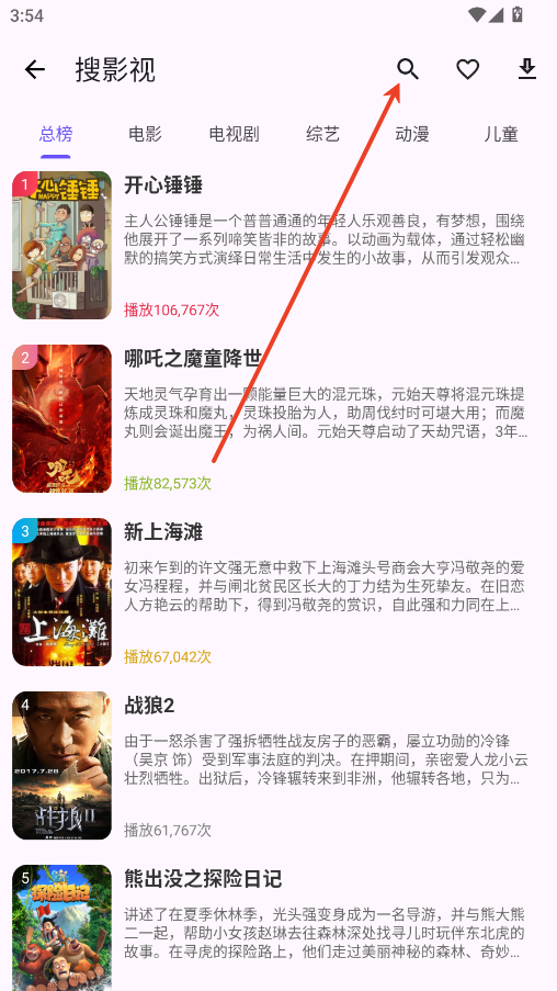 2.在点击右上方的放大镜按钮搜索你要看的影视剧名称。