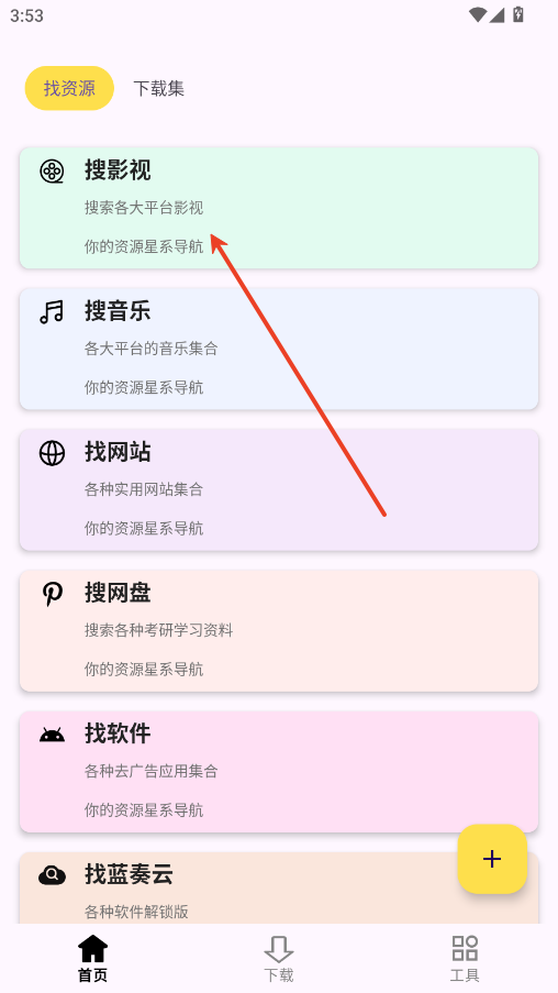 1.在软件首页点击搜影视板块。
