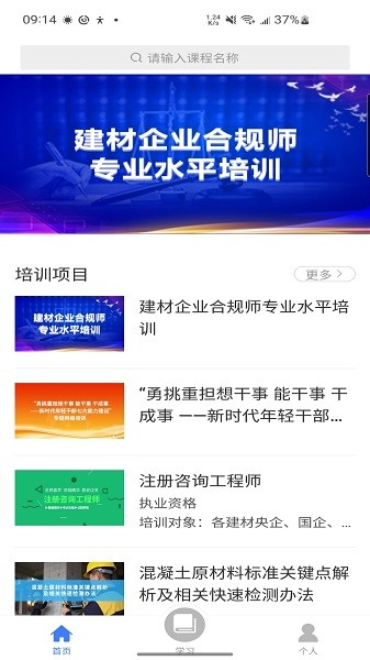 个人:查看个人信息,修改个人头像,绑定课程卡/学习卡,查看个人参加的课程、培训项目、设置相关信息。