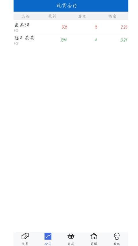 2、进入软件的交易界面后在底部菜单栏中点击“合约”按钮来进行下一步。