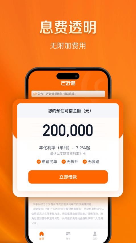 2.息费透明:年化利率(单利)7.2%起,具体利率以最终审核为准,年利率最高不超过36%;