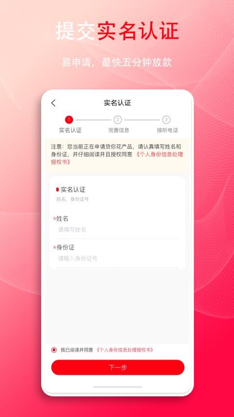 用户在软件上按要求完成自己的真实身份资料即可获取借款额度。