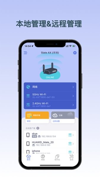 支持gl.inet大部分路由器使用,轻松管理您的路由器及联网设备。
