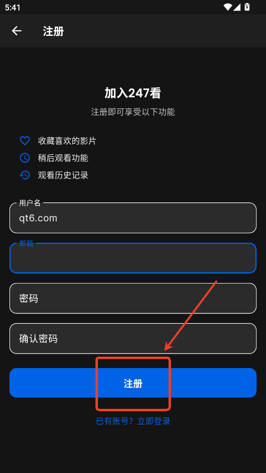第二步:输入用户名,邮箱号和密码,点击【注册】就成功了。