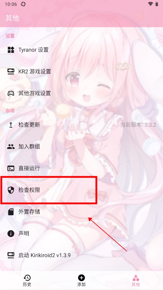 打开Tyranor模拟器选择其他点击检查权限,然后会跳出界面让你给权限,找到模拟器然后打开权限即可,如下图所示: