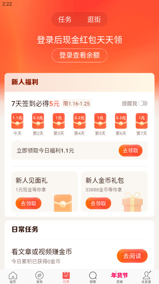 1、登录的话每个账号都会收到一个1元红包,红包直接就会放到余额。