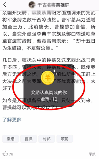 5、阅读软件内的文章也可以获取金币奖励,这个没有限制。