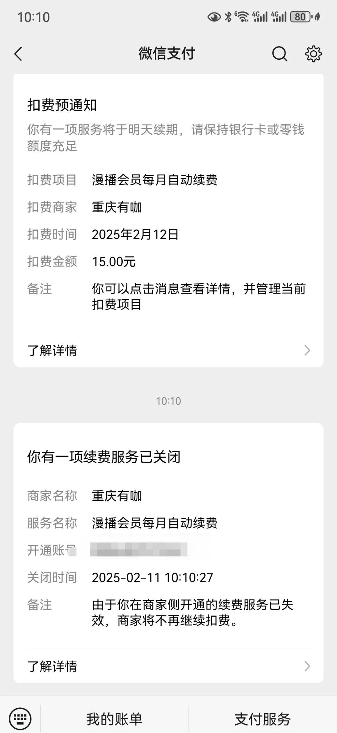 3.记得,如果你是用微信支付的,操作步骤应该是这样的。如果你是用支付宝支付的话,应该也有类似的续费提醒。