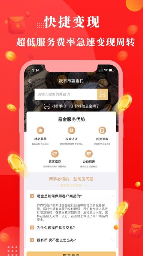 易金在线App是国内最大的贵金属投资领域纪念金银币二级市场社区电商拍卖交易平台,积聚8年的服务体系、以完善的技术创新和信任背书的发展势能。易金在线建立了在线竞拍、金币百科、易金大数据、认知传播、评级保养5大品牌方向。
