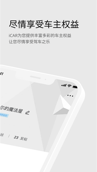 iCAR汽车app将开启您的汽车之旅,内置有车主社区,为您提供丰富多彩的车主权益,让您尽情的享受驾驶的乐趣,还可以以更优惠的价格订购新车!