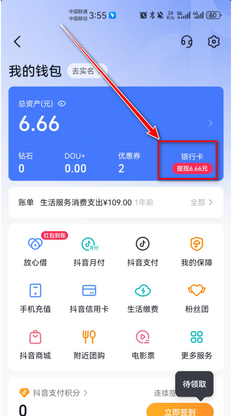 抖音怎么提现到银行卡