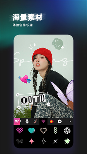 风格多样的贴纸和文字任意挑选,打造专属你的特色作品。