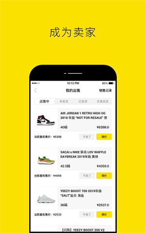 实名认证后就可以成为卖家上架自己的球鞋,潮玩潮品。交299保证金即可成为入驻商家。