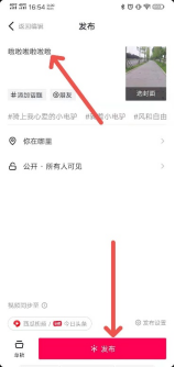 最后一步,可以在左上角写上你这个作品想要表达的意思,对拍摄作品的说明,方便受众理解作品具有的内涵,写完之后,直接点击右下角的红色发布按钮完成视频的发布。