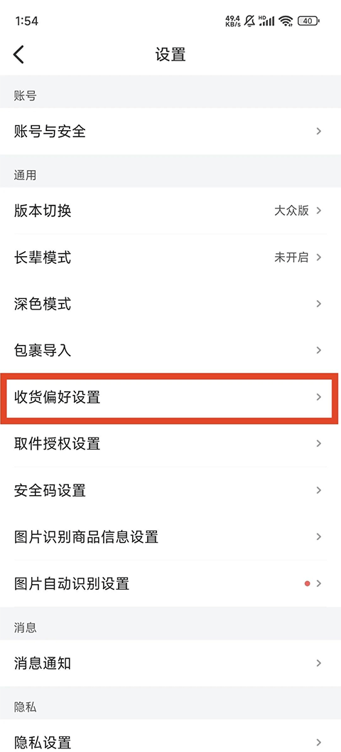 2.登录后,点击右下角的“我的”,然后进入“设置”。在设置页面,你会看到一个“收货偏好设置”选项,点击;