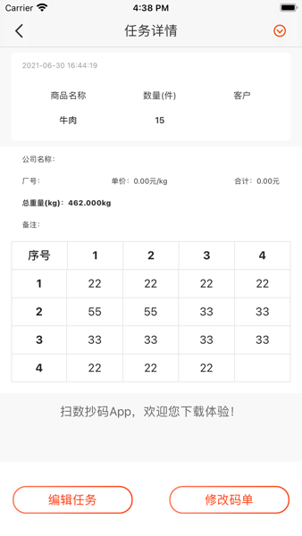 扫数抄码App,是款专业的冷冻食品手机抄码软件。本软件能协助您轻松完成抄码任务,是款非常实用的手机软件。