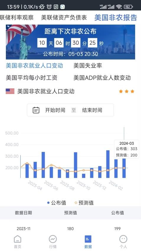 2、进入到数据页面可以对各种非农报告数据、持仓数据全面查看;
