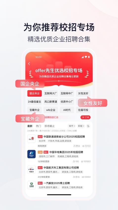 还会不断的推出许多的校招专场,以便让大学生都能够及时掌握优质企业的招聘内容;