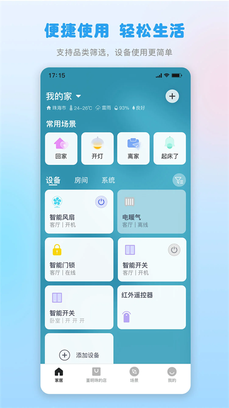 ·「设备控制」无论何时何地,轻松交互、随心控制智能家居设备。