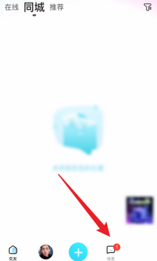1、在喜弟app首页面,点击下方的”消息“按钮。
