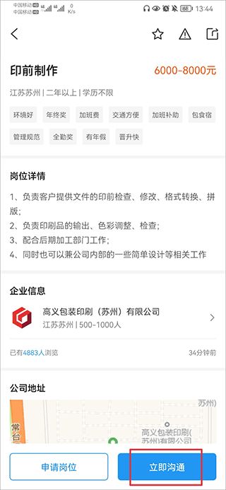 4.如果有心仪的公司后,可以点击立即沟通与该公司hr进行详细了解。