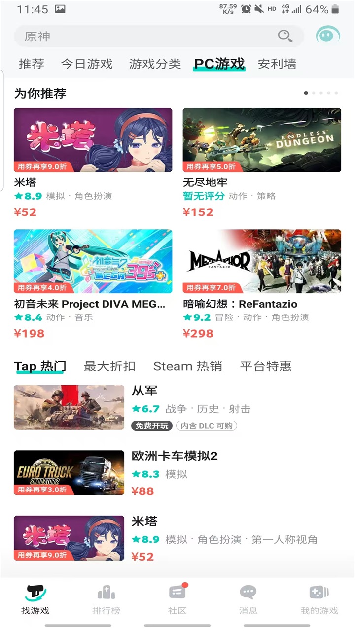 teptep是个啥东西呢?其实teptep就是taptap的错字而来,这是一个国内非常大的游戏平台,这里拥有超多的游戏资源,各种类型的应有尽有,不仅拥有国内各大厂商的游戏资源,同时还有超多的个人开发者和独家游戏,喜欢玩游戏的小伙伴快来试试吧!
