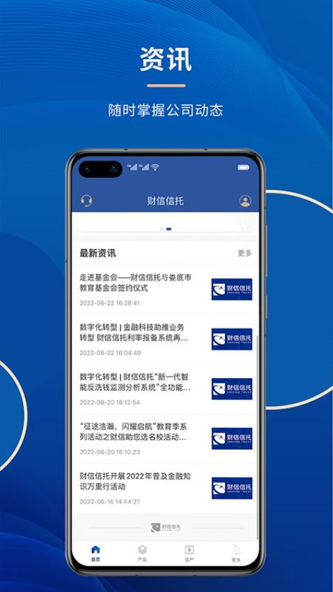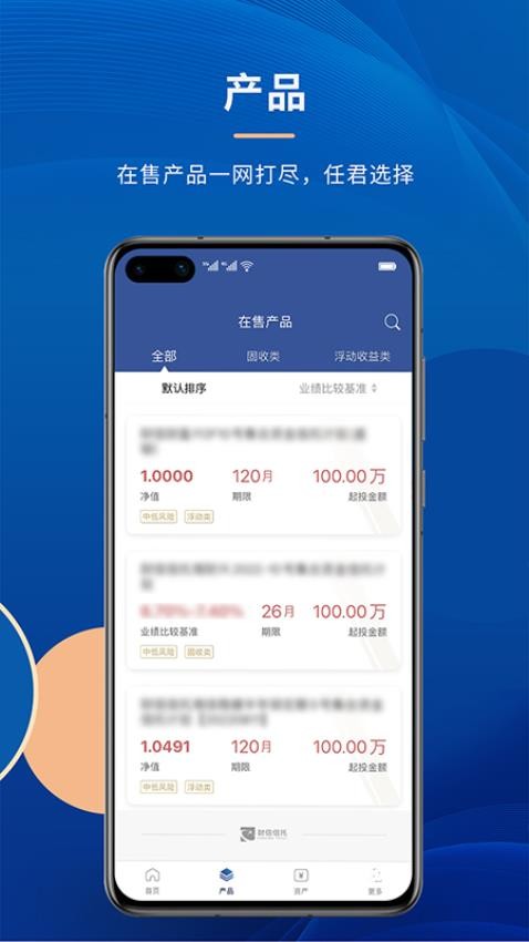 财信信托app官方版是一款专为高净值客户打造的私人财富管理软件,旨在通过手机移动端就能轻松进行财富管理,自己的资产情况可以在应用中全面了解,助力能更加轻松高效的进行投资理财,享受丰厚的收益;软件提供的服务很全面,集产品推介、产品认购、视频面签、信息查询等,一站式满足广大客户的管理需求,可实时知道自己的财富状况,管理更加的轻松便捷;丰富的产品类型,全都是精选优质产品,所有感兴趣的都能在线找到,并能轻松实现交易,助力实现高效投资,避免负盈利,投资赚钱更加的专业化;想要更加专业的管理个人私人财富,欢迎在本站下载财信信托app软件使用,助力管理更加的系统化。