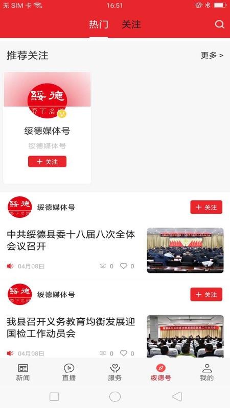支持用户将绥德媒体号一键关注,关注后可以第一时间获取最新的本地资讯信息。