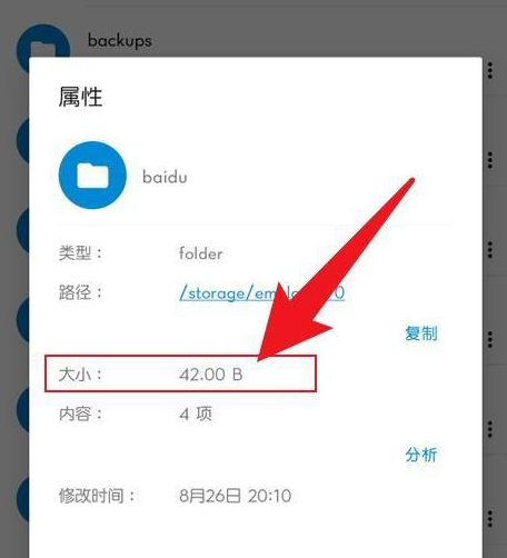3.在属性窗口里,查看文件夹的即可。