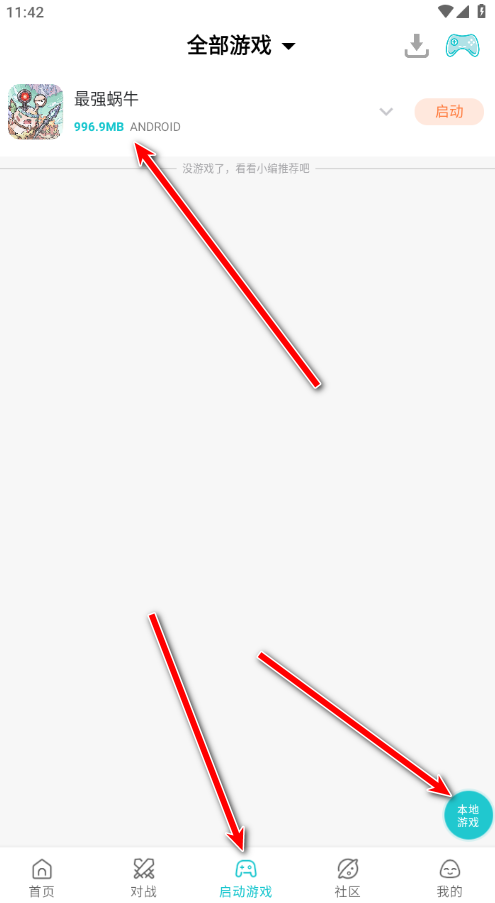 2.点击启动游戏,刷新本地游戏,就可以看到我们刚刚下载的游戏啦。