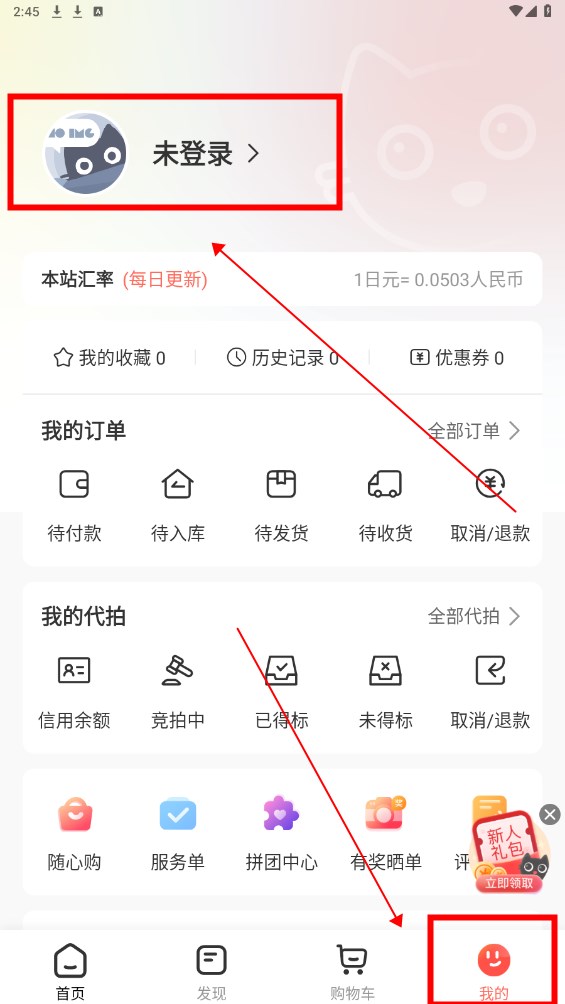 进入软件点开我的-未登录按钮。