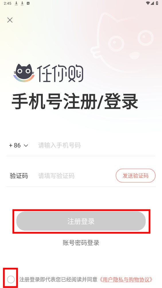 输入手机号发送验证码填写,点击注册登录即可自动注册。