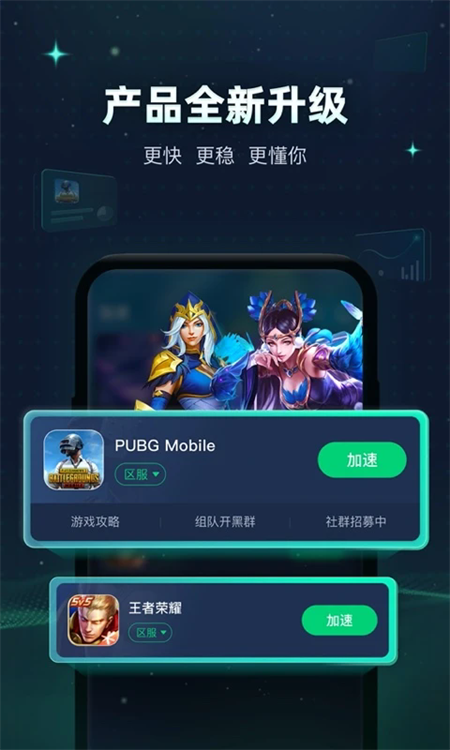 大幅度提高网络连接速度,专注于手机游戏的网络加速工具。