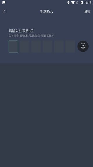 3.点开扫码,扫描充电桩上的二维码或者输入充电桩后六位进行解锁。