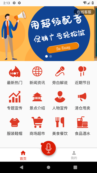 超级配音高级VIP版是一款自动将用户输入的文字转换成语音的软件,采用先进的人工智能技术,专为促销广告制作场景打造。提供富有激情和感染力的人工智能声音,告别其他应用中常见的机械音,声音清亮且饱满,让用户可以轻松制作适合门店促销、超市促销、地摊叫卖等场景的语音广告,内置大量促销广告模板,从编词、选音乐到选择主播,一键即可完成,极大简化了广告制作流程,有了这款配音软件,直接一步到位,省去多余的时间。