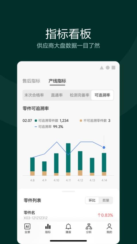 理想连山app是一款为汽车供应商提供实用的工业协作工具,软件为用户提供了线上智能化的全景模式,对相关的产线质量可以实时的风险预知,确保用户可以及时的接收,掌握关于产线的生产质量,更好的对其高质量的生产,保障产品交付的质量。平台还提供了线上详细的模型分析,帮助用户在线对相关的能力指标数据全面的概览,实时分析关键工序的异常情况。此外,理想连山官网版还支持用户在线查看关于产线指标的数据看板,清晰掌握相关的零件列表,肚脐可以合理的部署生产,便捷的追溯,有需要的用户就赶紧来本站下载使用吧!