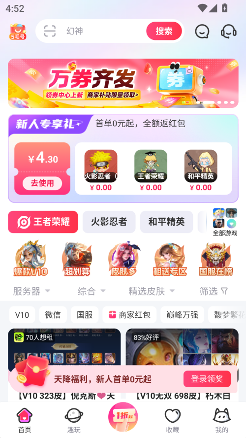 【特价专区】优质账号0.5元起租,不到一块钱也能体验大神号~
