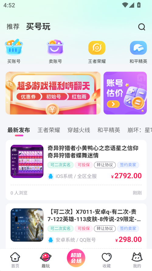 全品类的游戏覆盖——提供当下热门游戏(王者、lol、和平精英等)、火爆新游的账号出租