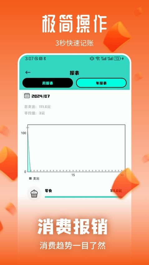 软件还会为用户提供直观的消费趋势报表,方便用户了解自身消费情况。