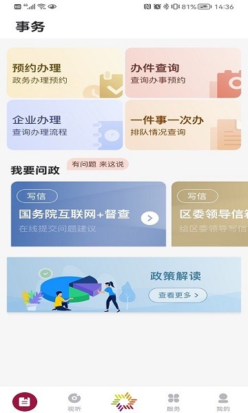 1.可以随时预约/查询办事,提交留言/信件在线问政