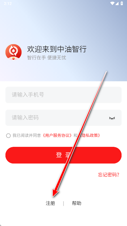 1.打开中油智行,点击注册。