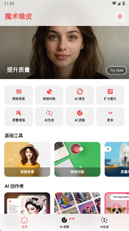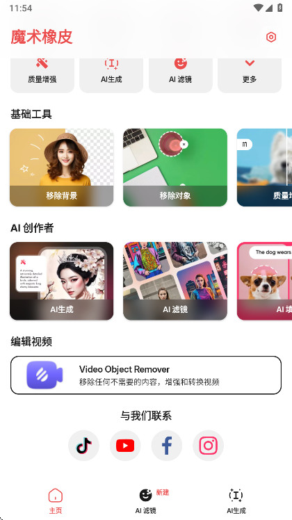 1、请先在本站下载打开魔术橡皮app,选择你需要的工具,如去背景、橡皮擦、锐化等。