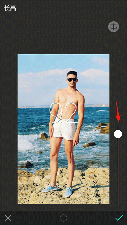 6、如长高特效:导入素材图片后通过右侧滑块调整高度;