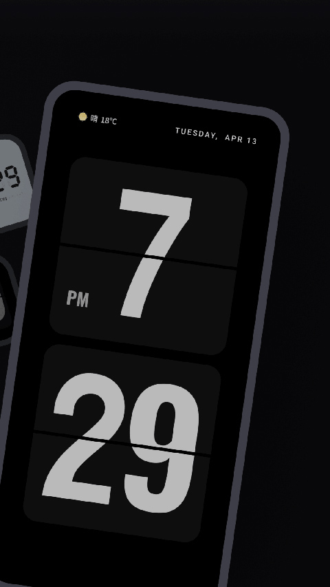 经典复古桌面时钟,全面屏动态翻页效果给您带来不一样的时光体验! 醒目的时间显示,在桌面或床头柜上任何角度都方便查看时间,是手机中一道亮丽的风景线。