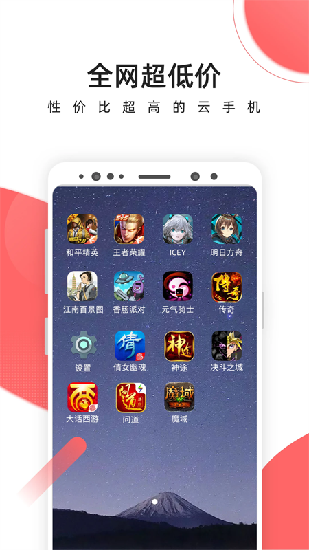 爱云兔云手机基于云计算实现各种手机应用程序的虚拟化应用,支持各种手机app、游戏等应用在云端24h在线运行。即在爱云兔云手机上对游戏设置自动战斗操作之后,关闭红手指,游戏界面也是一并关闭的,但游戏依然可以在云端24小时自动运行、自动升级,即使手机电脑关机、网络断开,也不影响游戏挂机状态。