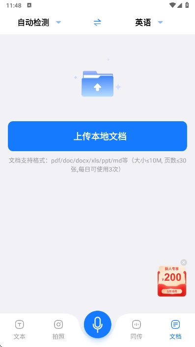 3.为用户带来了同传服务,可以快速收音。