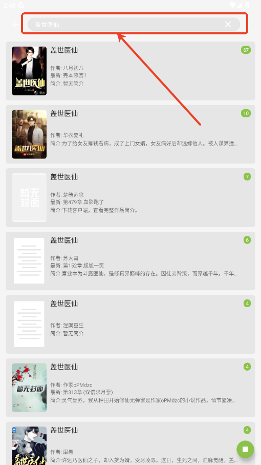 在搜索框中,输入您想阅读的小说名称或作者,快速找到感兴趣的书籍。