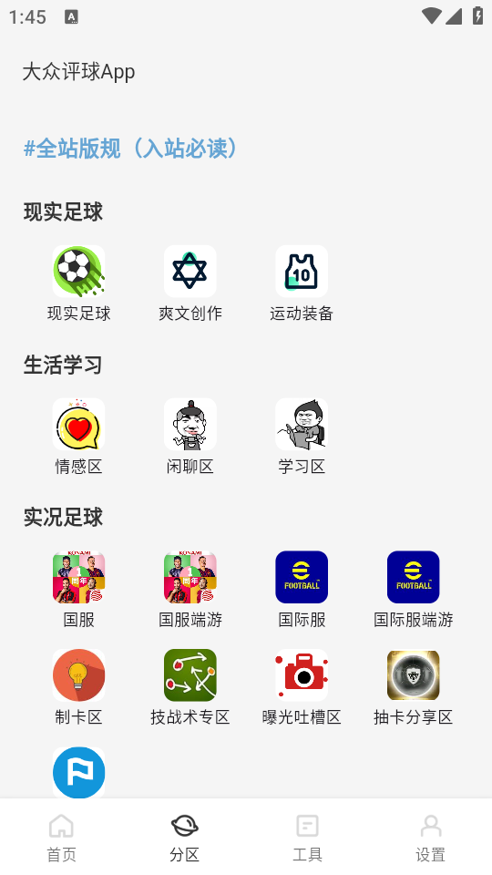 1、首先进入大众评球app,点击工具,点击所以球员;