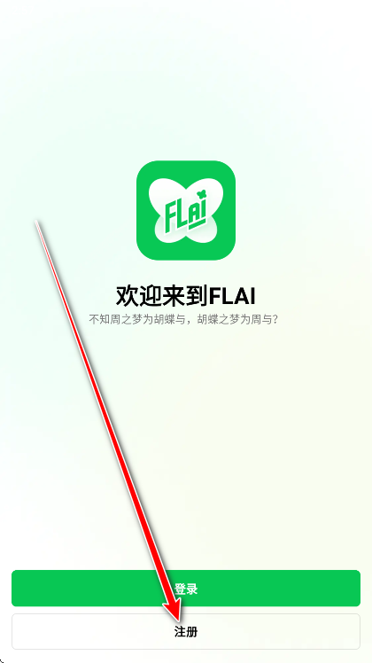 1、打开FLAI,点击注册。