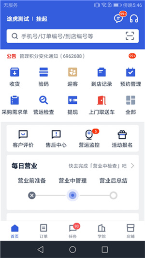 1、打开途虎商户APP,首页右上角即可找到【客服】入口